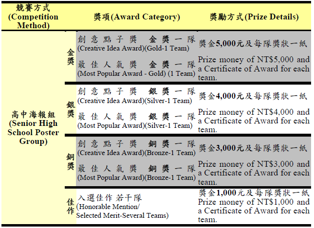 2.    高中職組:以專題競賽形式徵件,主題可結合永續、創新、文化或社會責任等議題。